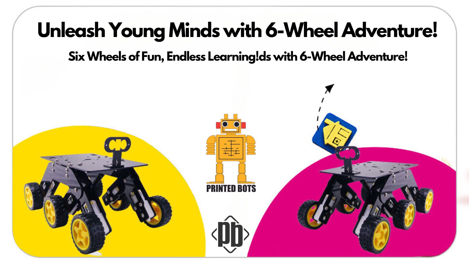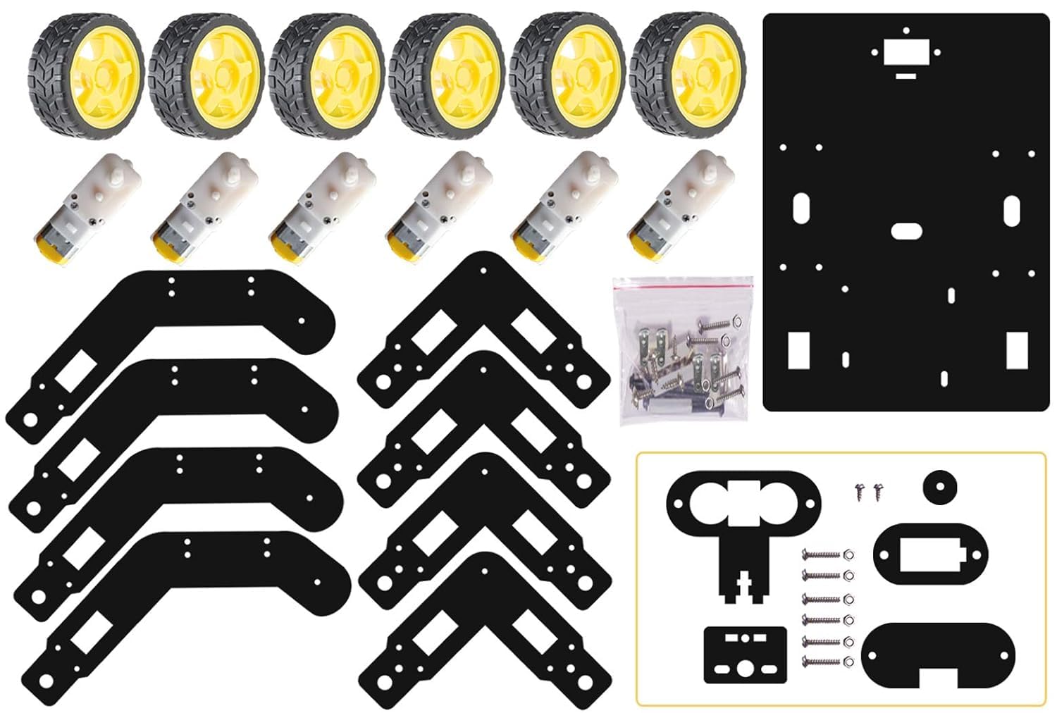 Printed Bots ® Acrylic 6 Wheel Drive Curious Chassis for DIY Robotics (Black)