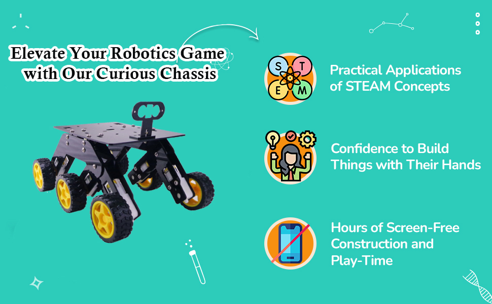 - 6WD (Wheel Drive) Curious Chassis rover is a robotic kit.