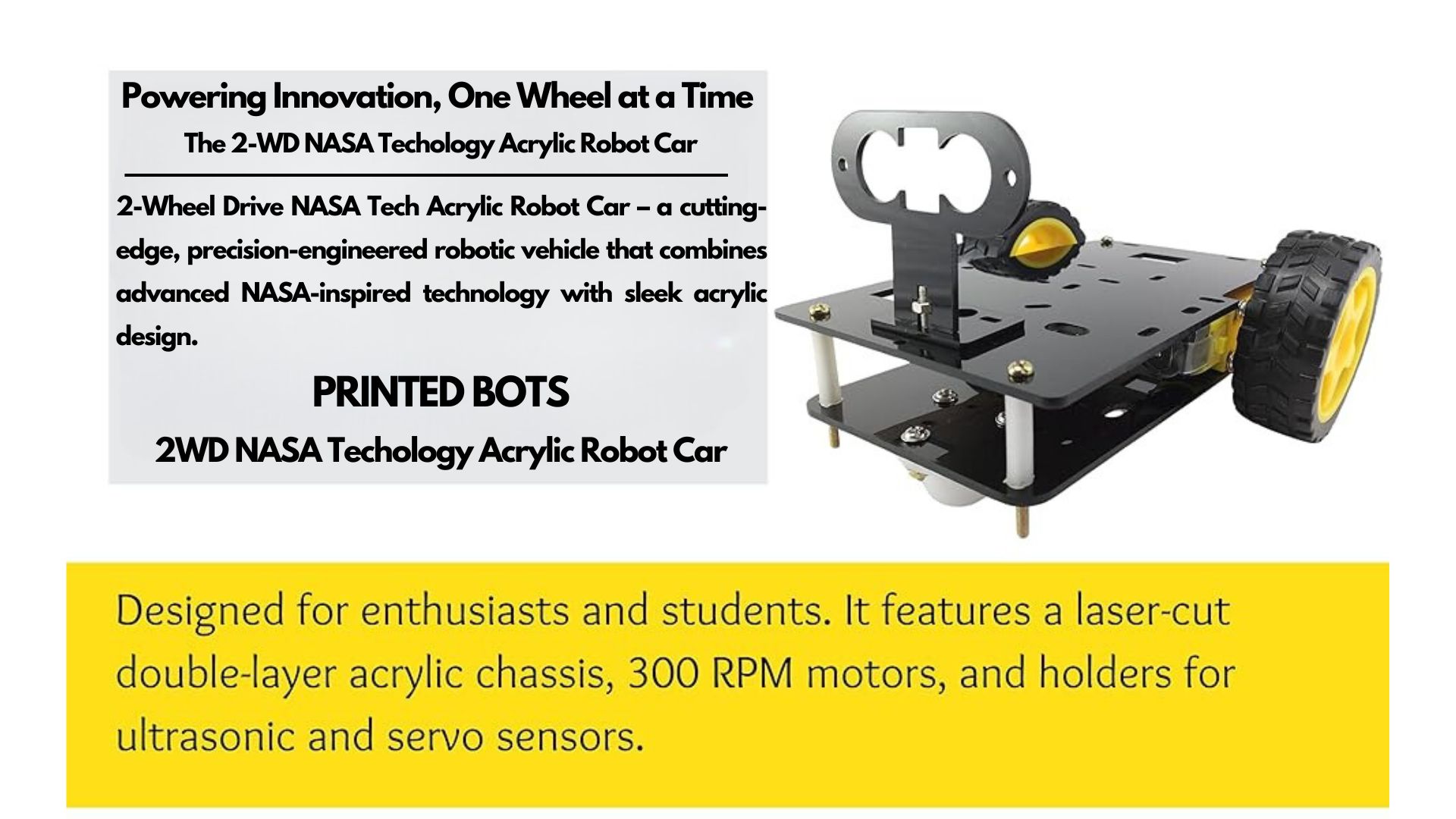 Printed Bots NASA Tech Acrylic 2 WD Curious Chassis for DIY Robotics (Black)